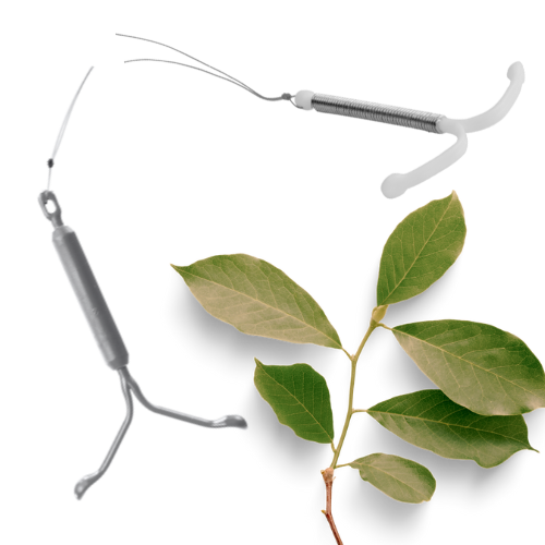 The Mirena or Skyla IUD – which contains a small amount of localized hormone  – is also a small, T-shaped piece of plastic, but it is not wrapped with copper, and also contains small amounts of levonorgestrel, a non-estrogen⁠ hormone (so it’s an okay choice for those who do not want to or cannot use estrogen). That hormone is not how the IUD itself works,  but rather primarily is there to help prevent a typical side effect of the Copper-T: longer, heavier or more painful periods. Most using Mirena or Skyla have shorter, lighter periods and some may stop having periods altogether, which some see as a bonus and others are not comfortable with. The Mirena can be left in place for half as long as the Copper-T: for up to five years, and the Skyla can be left in place for up to three. People who want lighter, shorter periods, the possible absence of periods (but accept spotting may still occur erratically), or who have allergies to copper may find the Mirena or Skyla to be their best choice.